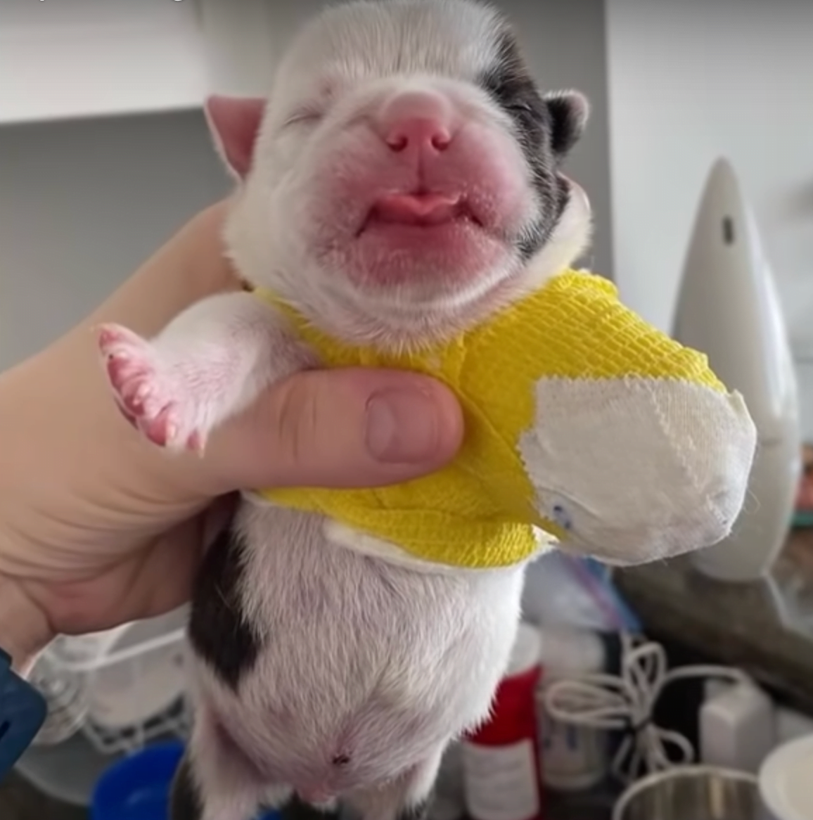 Draper was so tiny! The vet said he needed to be put in the warmer immediately. While Draper warmed up and finally slept, the vet treated his leg. He wasn’t sure if the wound would heal but what was most important was that Draper was now safe!
