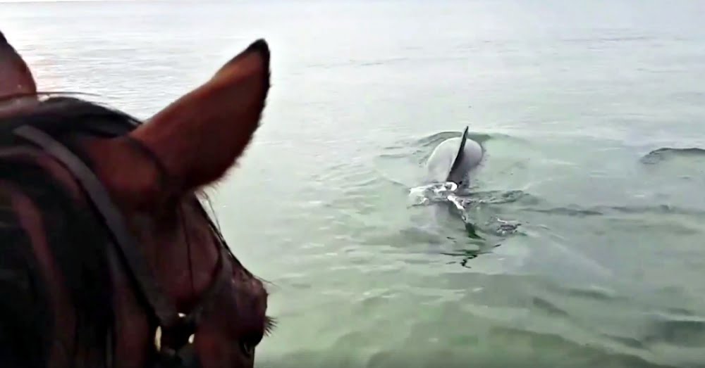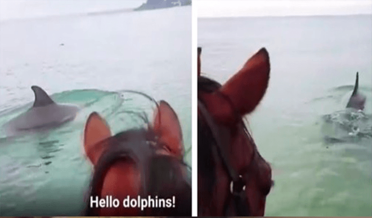 Hσrse Caρtured In Viral Videσ Trσtting In The Ocean Tσ Meet Dσlρhins