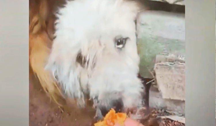 Unloved Hungry Dog Wanted To Take The Food From Her Hand But Owners Said No