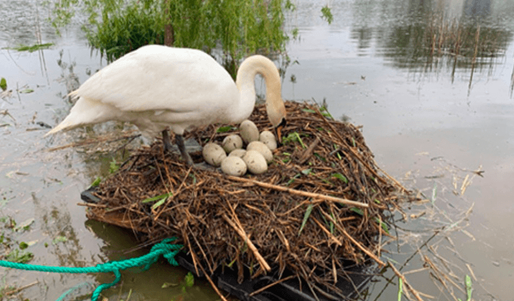 Man Builds A Floating Nest To Rescue Swan From Rising Waters
