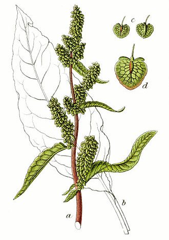 The docks and sorrels, genus Rumex, are a genus of about 200 species of annual, biennial, and perennial herbs in the buckwheat family, Polygonaceae. Members of this genus are very common perennial herbs with a native almost worldwide distribution, and introduced species growing in the few places where the genus is not native.[1]