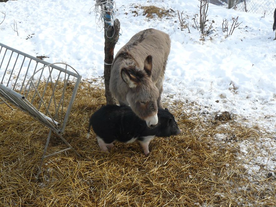 It´s incredible to see how close these animals became. They often sleep in the same beds, eat from the same bowls and keep each other warm during the freezing winter months. They all take care of one another.