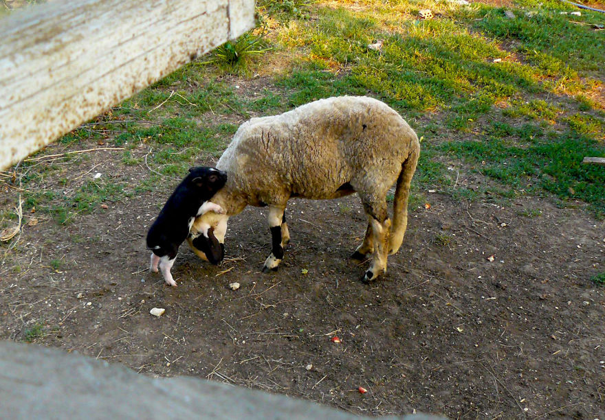 He is very protective of Jewel, the young goat