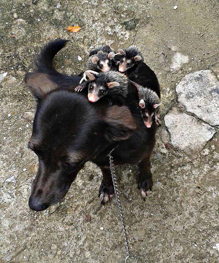 Dog Adopts Orphaned Opossums, Then Takes Them For Awesome Rides On Her Back