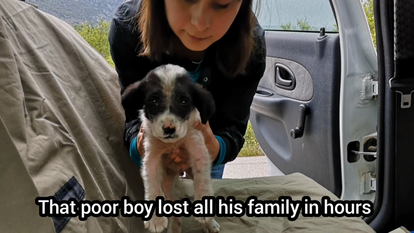 A tiny little puppy was spotted in the woods. His mom and brother were founded deceased near him, writes snn.