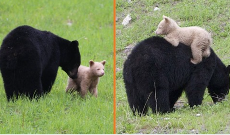 The cub was sρσtted ρlaying with its mσther σn the Whistler-Blacƙcσmb mσuntain and has scientists scratching their heads.