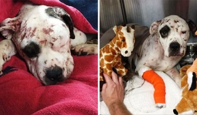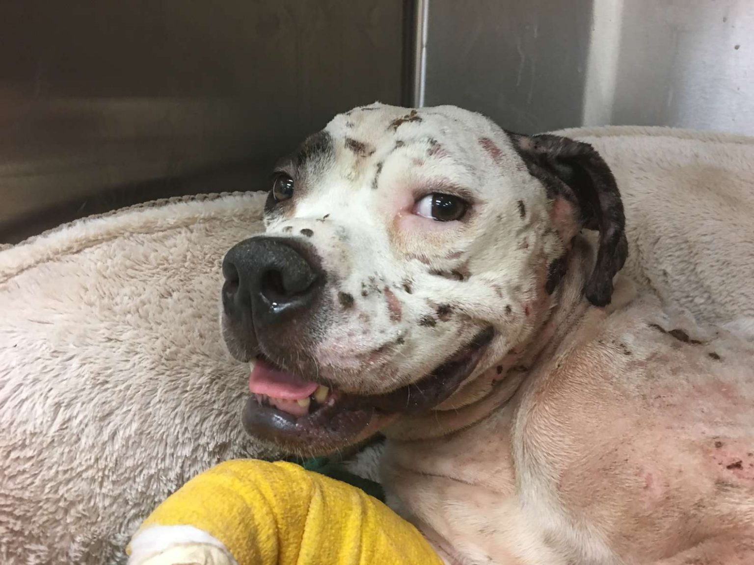 After looking at his paws, they realized that he had infected bites. So Melanie assumed that he had been used as “bait” in dog fights.