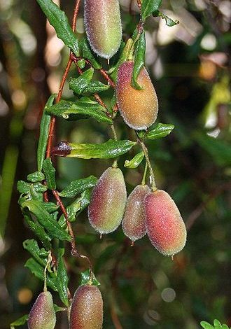 Members of the genus, Billardiera, are woody climbers.[4] The leathery leaves are alternate.[3] The 5-merous hermaphroditic flowers are usually terminal, and may be solitary or clustered.[3] The perianth consists of a distinct calyx and corolla.[3] The petals are clawed. The anthers shed their pollen via longitudinal slits.[3] There is one hairless style & stigma.[3] The ovary is superior and either 2 or 3 locular, with the placentation being parietal.[3] The fruit is either a two-celled capsule or a berry with one or two cells.[3] The wingless seeds are often covered in a mucilaginous pulp.[3]