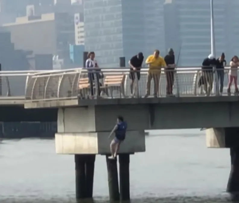 Gabe was enjoying his outdoor birthday party near New York’s East River when a commotion from the water garnered his attention. He looked toward the noise and realized that a black and white dog was struggling to stay afloat in the water.