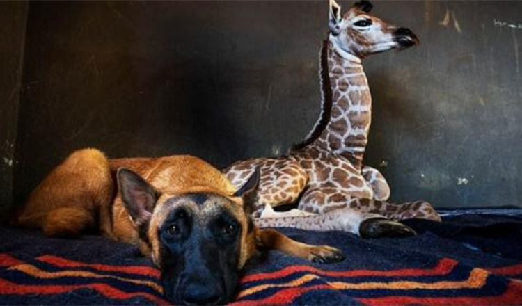 Beautiful Relationship Between Orphaned Giraffe And Guard Dog