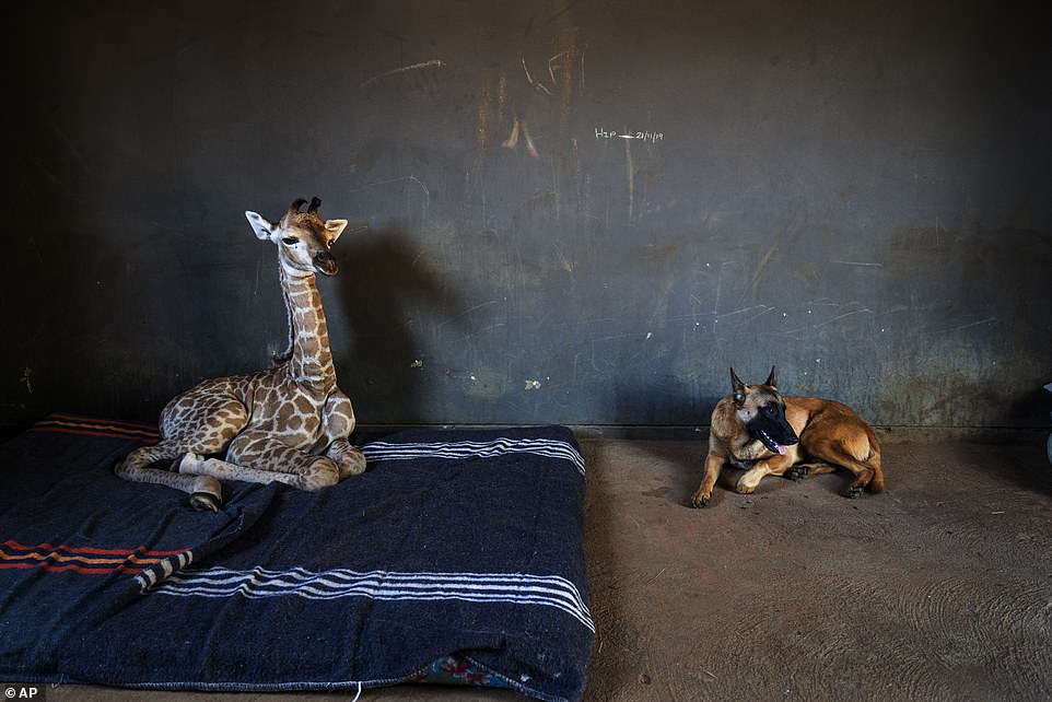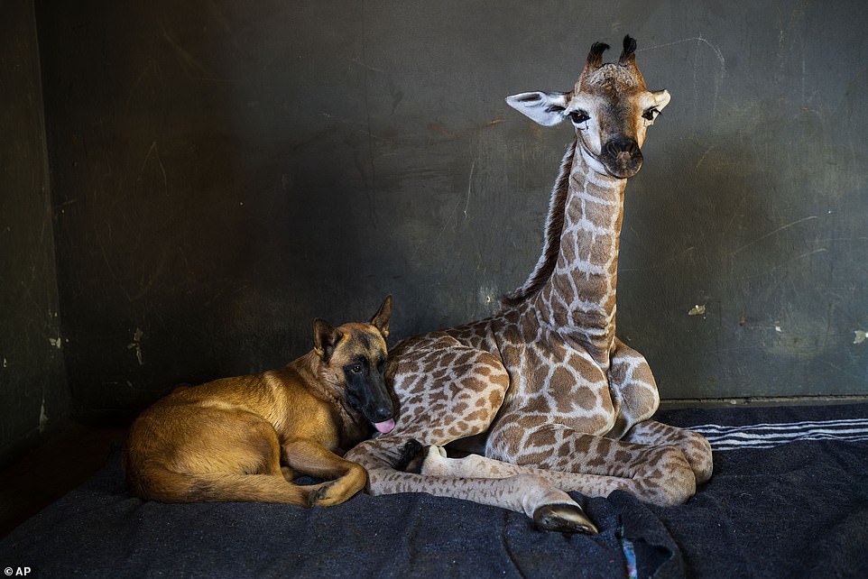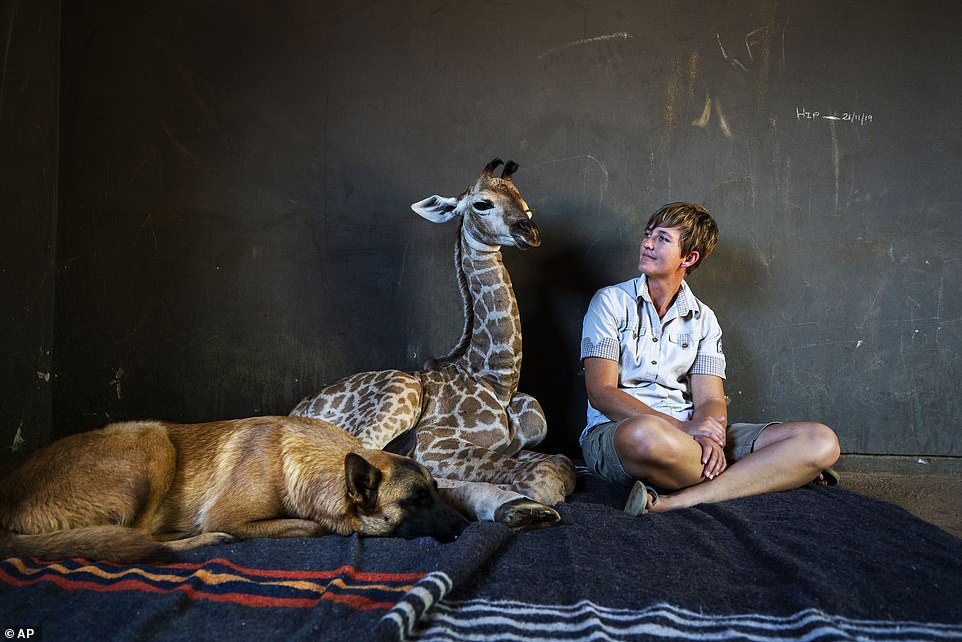 Janie Van Heerden is a caretaker at the orphanage, he says that the pair bonded instantly, with Hunter snuggling into Jazz the giraffe’s body as if it was another pup.