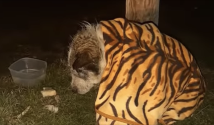 This poor dog was beaten terribly for no reason whatsoever. A woman overheard his screams and came rushing over. She brought him a blanket and called the local animal rescue. She was then forced to put herself in harm’s way when the abusers came back to beat the dog again.