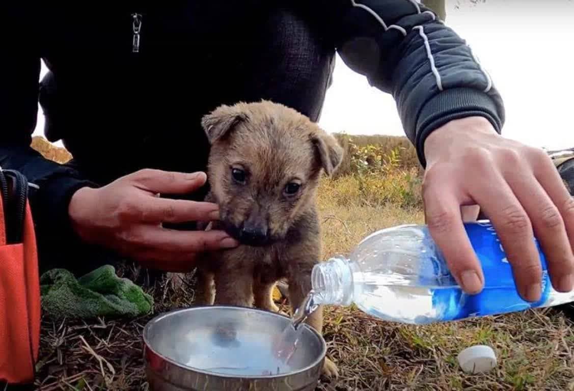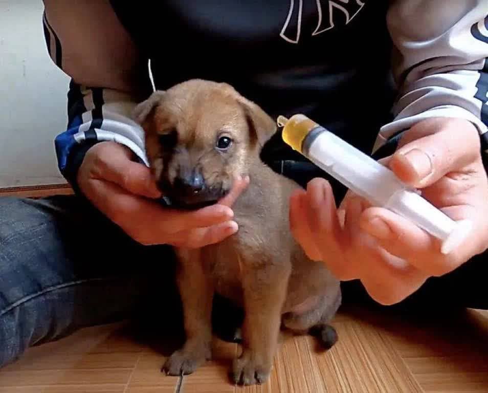 The dog can drink clean water after a long struggle in the landfill to survive. He is supplemented with vitamins and vaccines to increase the resistance of the dog.