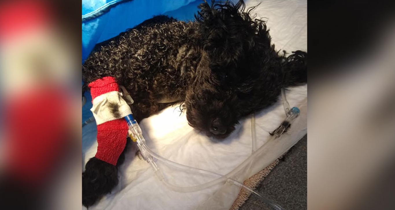 The bear eventually ran away, and Merrill brought Pickles back in, but he was in bad shape. The fight with the bear left the small dog with severe lacerations.