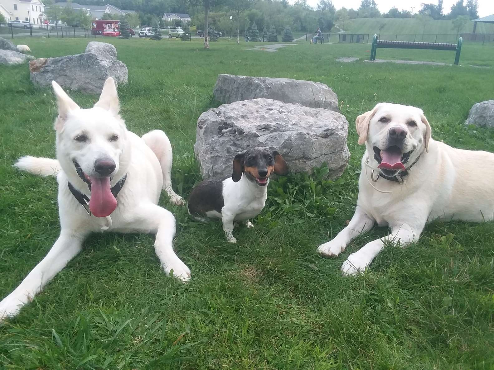 When Molly met her two new rescue dog siblings, Moo and Maddie, introductions went surprisingly smoothly. “At first she was scared of my giant white dogs,” Fricker added, “but she learned that they are family.”
