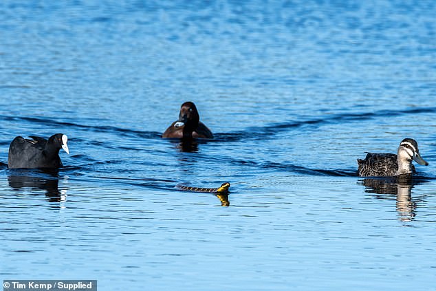 “As the minutes ticked by and there weren’t any feathers flying or wings splashing, I realised if the birds knew the snake was there, they didn’t care,” he said.
