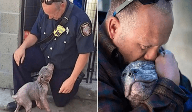 Within a few days of meeting her, the adorable Pitbull was adopted by the firefighter and his family. They were so determined to give her a home, that they had to wait for four months until she’d finish her comprehensive mange treatment.