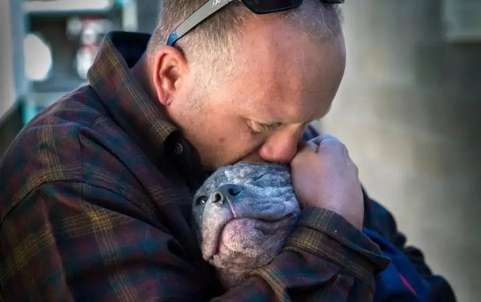 He visited her the next day, and it was clear to everyone who saw their reunion that Chunk was very grateful for everything he’d done for her. She climbed him, kissed him, and wagged her tail continuously.