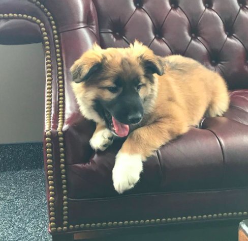 Due to a high-stress job, Sgt. Fuzz is the perfect distraction. Staff realized that after visits with the puppy, they felt calmer. Getting cuddles with Sgt. Fuzz was exactly what they needed to put a smile on their faces.
