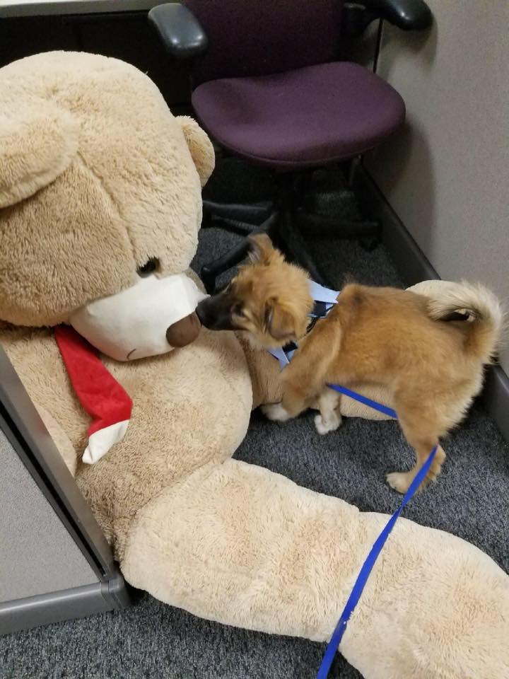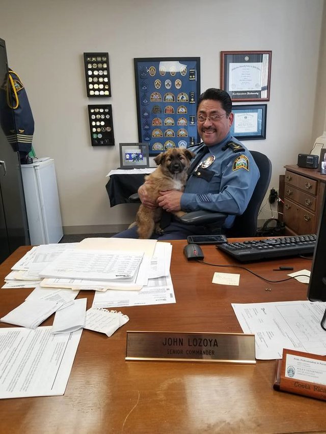 “Our chief brings his dog, Stella, in on Fridays, so we thought it’d be nice to have the puppy come in here and there, too,” John Lozoya, senior commander of community engagement for the department, told The Dodo. “He was an instant hit with everyone.”