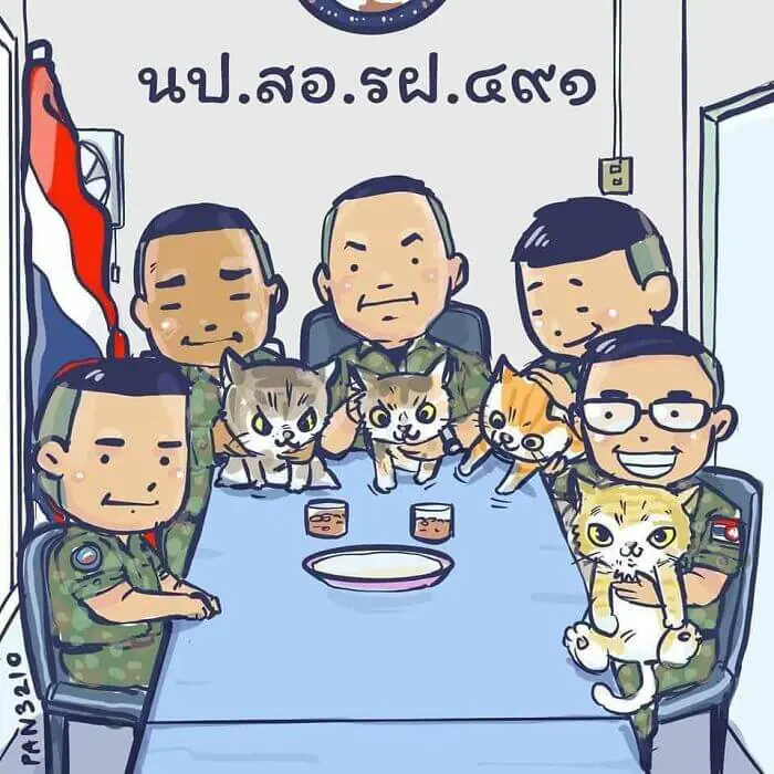 The pet cats were later given the Royal Thai Navy’s command post on the island of Koh Lipe, where they are currently secure.