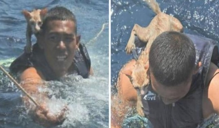 Thai Navy Officer Jumps Into Water To Rescue Four Cats From A Rapidly Sinking Ship