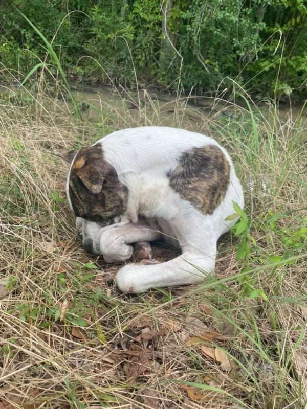 It’s unclear exactly how the dog ended up like that. Unfortunately, he might’ve been hit by a car. The boys knew they needed professional help for the dog, so 13-year-old Wade Harrell called Haseya’s New Beginning Animal Rescue.
