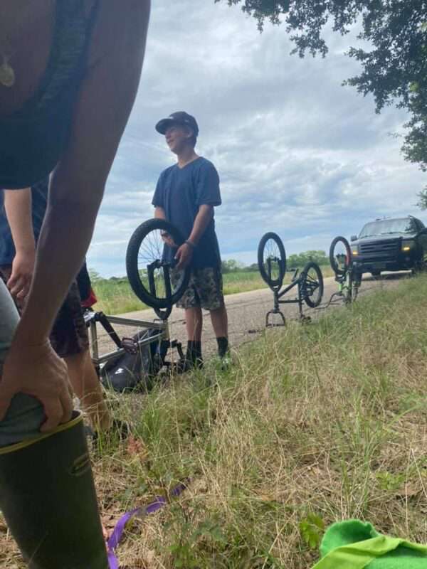 Wade and his friends, Tyler Cancienne and Brayden Mauroner, waited with the dog until help arrived. In the meantime, they placed their bikes upside-down along the road to provide a barricade. They didn’t want anyone driving too close to the dog, so the bikes were like substitutes for orange cones.