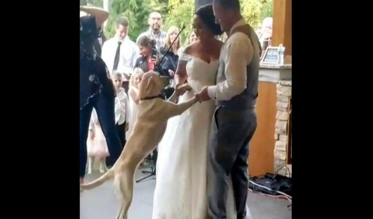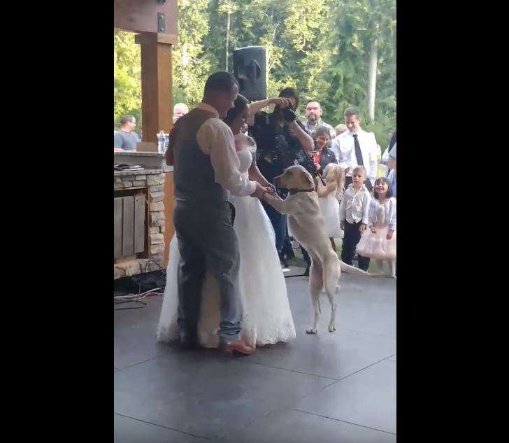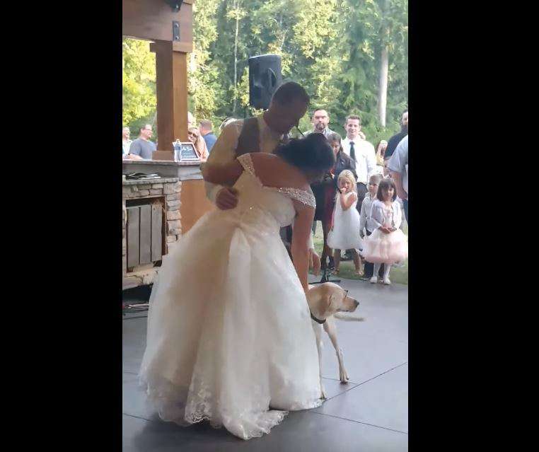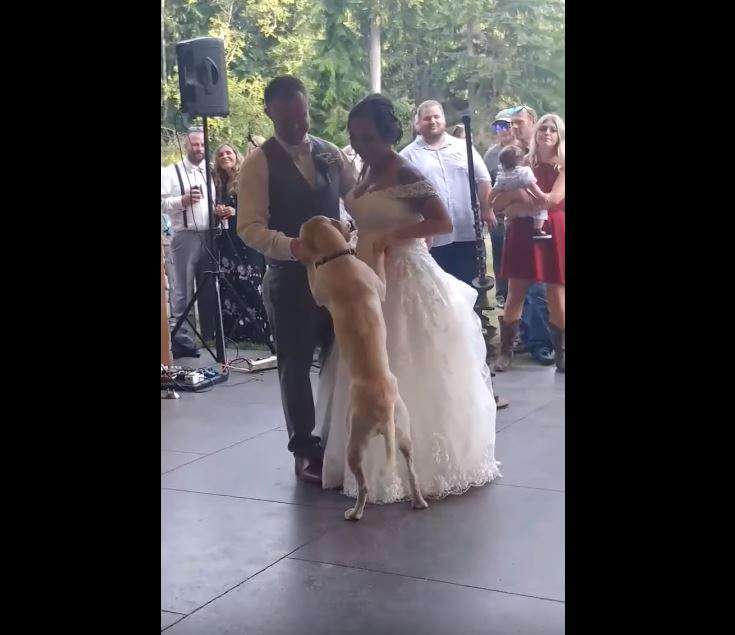Couple’s labrador crashes their first wedding dance and melts thousands of hearts