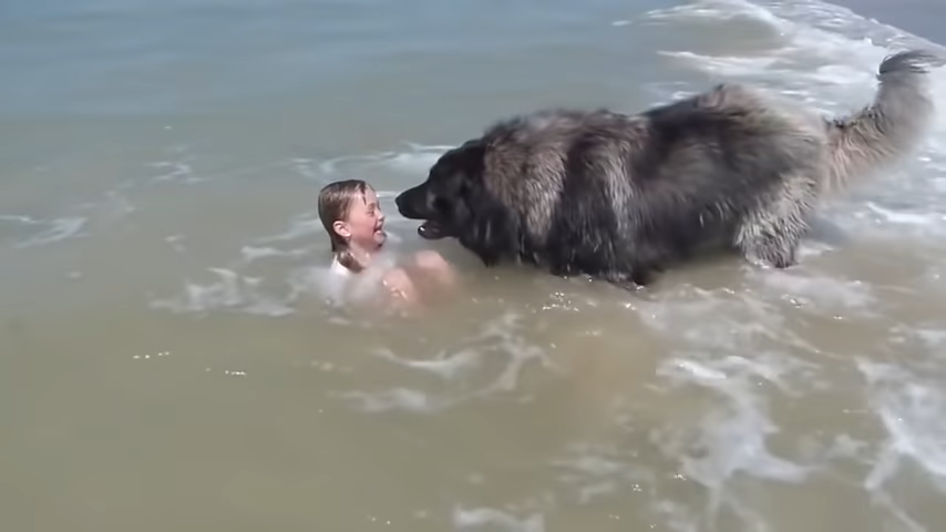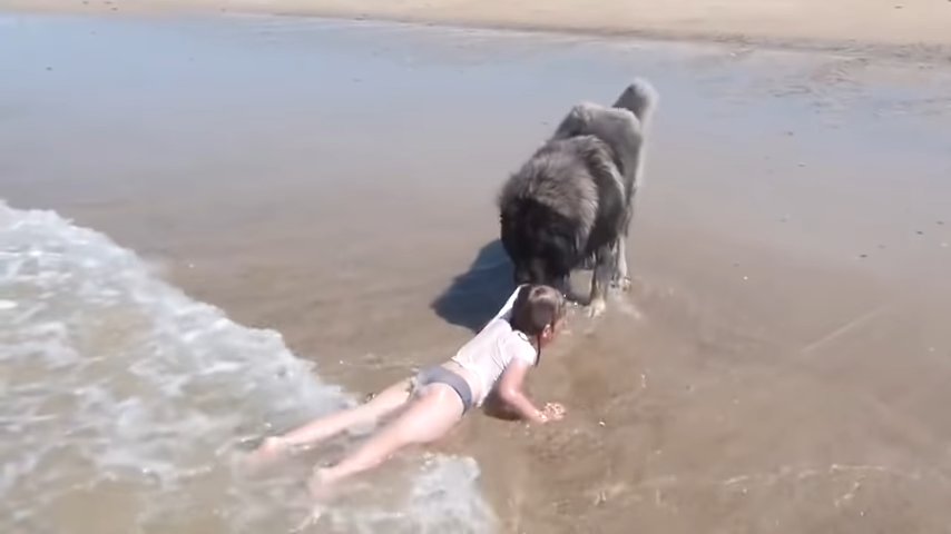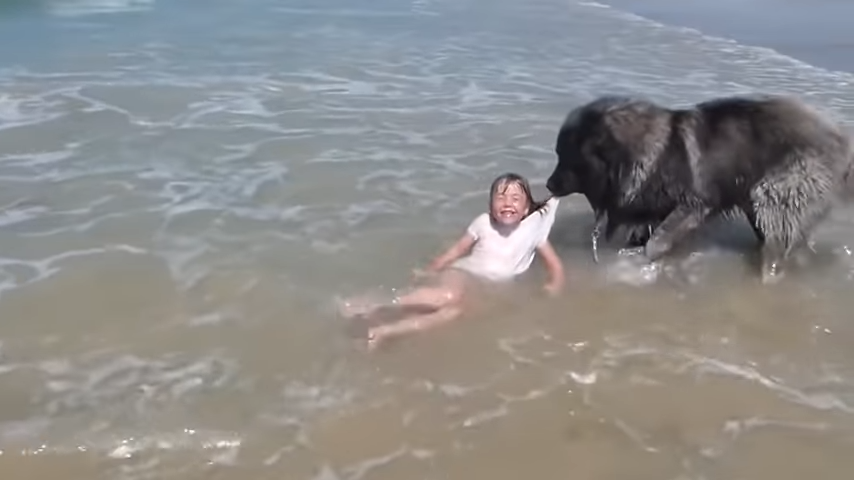 In this heartwarming video, mom’s got her camera while out for a sunny day on the beach. Her little daughter is swimming in the shallow waters with their massive pet, a Newfoundland dog. These floppy fluff balls are big slush buckets. They don’t like being alone and are very sociable creatures. They are good-natured but can be a bit clumsy and have a wildly independent streak. They’re excellent companions and make really good family dogs, as seen in this sweet video.
