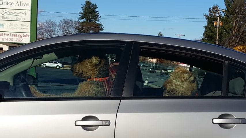The dogs in this video are apparently used to car rides and have even learned to let their owner (and everyone else) know that car rides mean that the car should be moving. Left in the car by themselves, one dog waits patiently in the back seat while the other dog takes up residence in the driver’s seat. That’s when things get hilarious—he starts honking the horn! The dog may stop the beeping for a few moments, but when his owner doesn’t show up, he resumes his insistent horn honking. Curious passers-by can’t get enough of this hilarious, impatient, road trip pup.