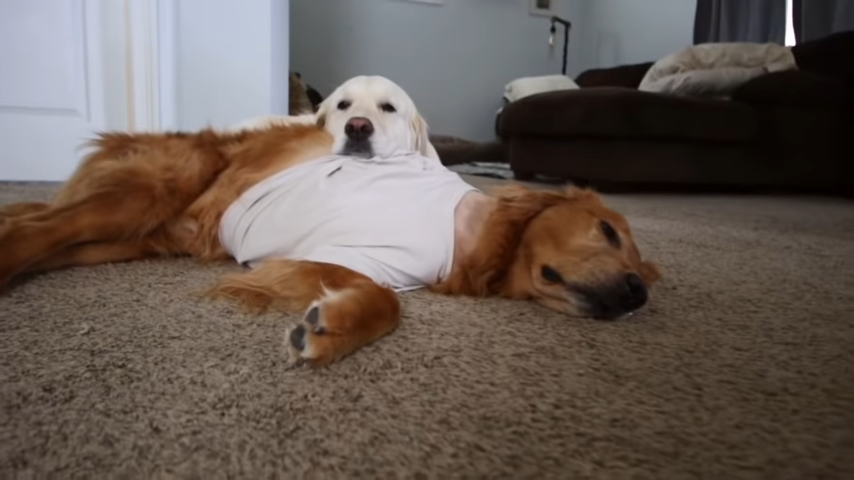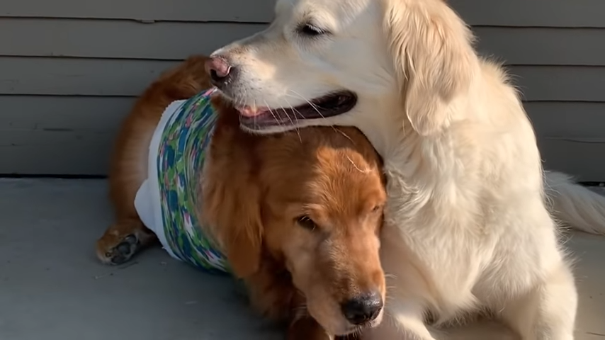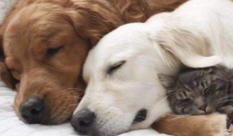 Mellow Golden Retriever Helps Calm Down His Animal Siblings