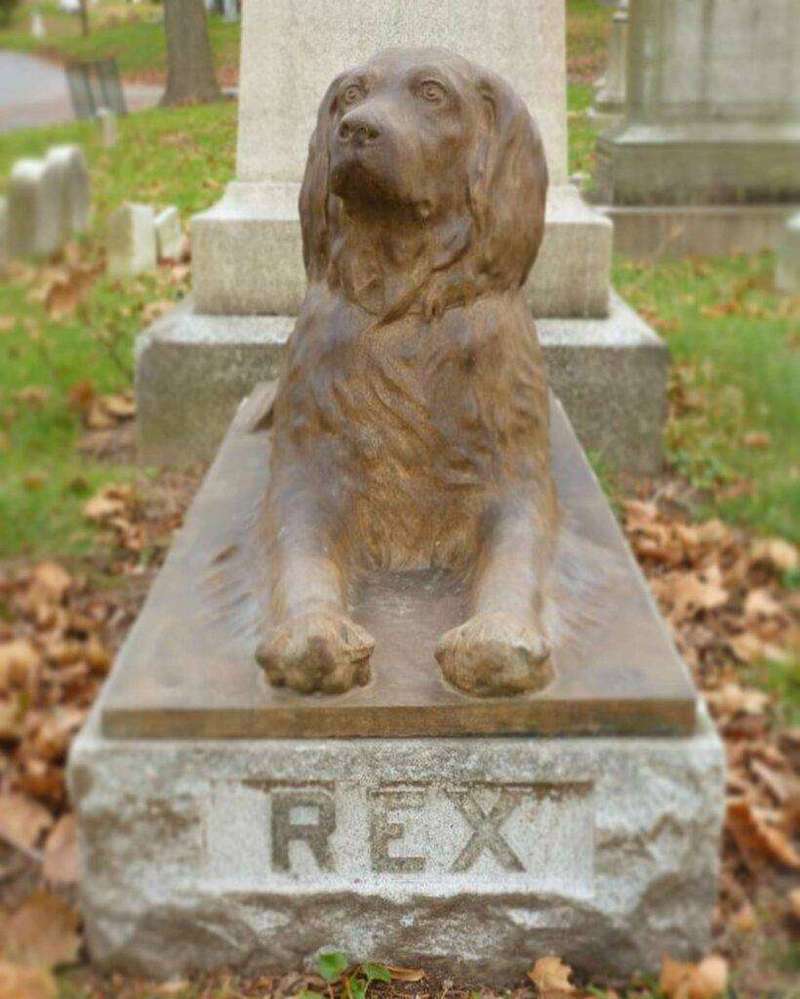 But Rex isn’t the only animal to be honored at the 478-acre cemetery — several other beloved pets were buried with their owners before the cemetery’s board of trustees prohibited animal burials in 1879. “There’s another dog sculpture that has a similar mysterious story but it’s a little bit more off the beaten path,” Locke said. “And that one typically has toys left on it.”
