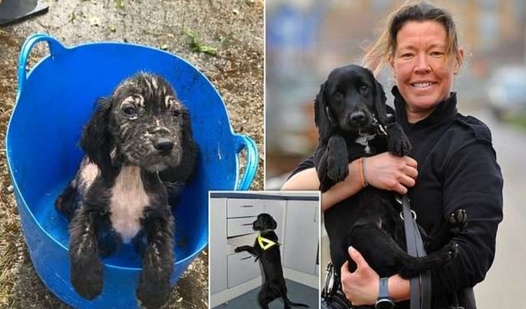 Badger the spaniel who was found dump.ed in a bucket as puppy training as a police sniffer dog