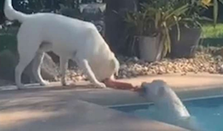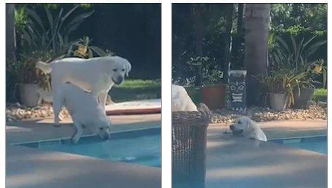 Labrador Retriever throws his sister a rope after she falls into a swimming pool, writes moneysavingbasic.