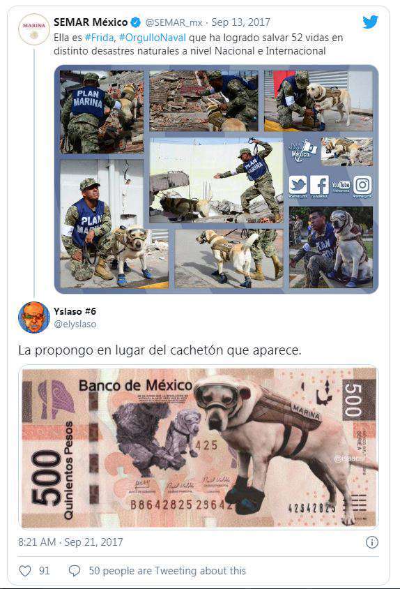 Frida’s efforts have been praised across social media, with some suggesting she replace the famous Mexican painter Diego Rivera on the 500-peso note.