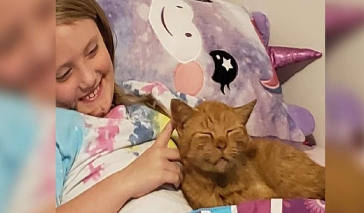 With permission from Pumpkin Jr.’s owners, the cat now visits his little girl every day, and their sleepovers have continued.