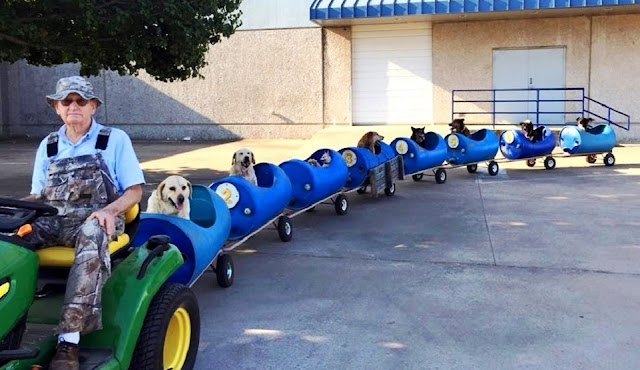 Eugene would constantly assume of unique approaches to keep his pups delighted, which’s how he stumbled upon the eccentric concept of a doggie train! Being a knowledgeablewelder, he punched holes in plastic barrels, consistent wheels on them and also attached them jointly like makeshift cargos. He after that hooked them approximately a small tractor and customary a phenomenal trip for his important pet family!
