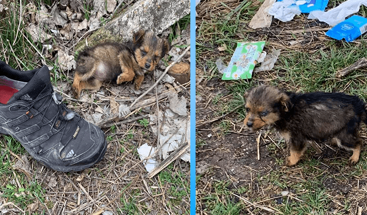 The little pet was living near a pile of garbage, making use of an old boot to shield herself from the elements. The puppy was too young to be without a mommy, however Marinkovic couldn’t find any other pets close by.