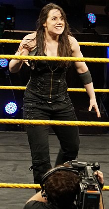 On the 11 January 2017 episode of NXT, Cross came to the aid of NXT Women’s Champion Asuka, who was being attacked by The Iconic Duo (Billie Kay and Peyton Royce), before turning on Asuka and attacking her as well.[19] As a result, Cross, Royce, and Kay were placed in a four-way match at the TakeOver: San Antonio event on 28 January, which Cross failed to win.[20] In May, Cross participated in a number one contender’s battle royal for Asuka’s NXT Women’s Championship, where she, Ruby Riot, and Ember Moon were attacked by Asuka for being the last competitors left in the match and as a result, all four of them were placed into a four-way championship match at TakeOver: Chicago,[21] which was later changed to a three-way match after Ember Moon suffered an injury.[22] At the event, Cross failed to capture the title.[23] In a rematch which was contested in a three-way elimination match once again against both women, Riot was the first eliminated before the match ended in a no contest as Cross and Asuka brawled backstage.[24] This led to a last woman standing match (the first-ever in WWE history) between the two women for the NXT Women’s Championship on the 28 June episode of NXT, in which Cross was once again defeated.[25]