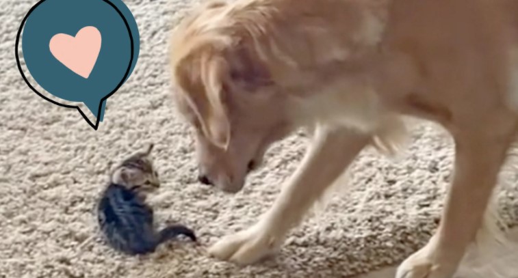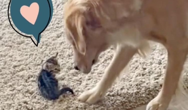 Golden Retriever Meets Her New Kitten Sister in Video That’s Too Sweet for Words