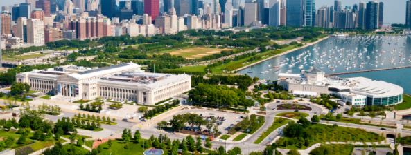 The Museum Campus opened on June 4, 1998, when the northbound lanes of Lake Shore Drive were moved west of Soldier Field following the route of the expressway’s southbound lanes. By removing the roadway which bisected the area, Museum Campus was created into a green space for the enjoyment of both residents and tourists. In 2014, a consortium of museums in or near the University of Chicago, formed Museum Campus South.[1][2] Also in 2014, filmmaker George Lucas selected Museum Campus as the location of the Lucas Museum of Narrative Art, which would have cost an estimated $700 million,[3] and expanded Museum Campus south along the city’s waterfront. However, these plans were cancelled in June 2016 due to opposition from the Friends of the Parks advocacy group.