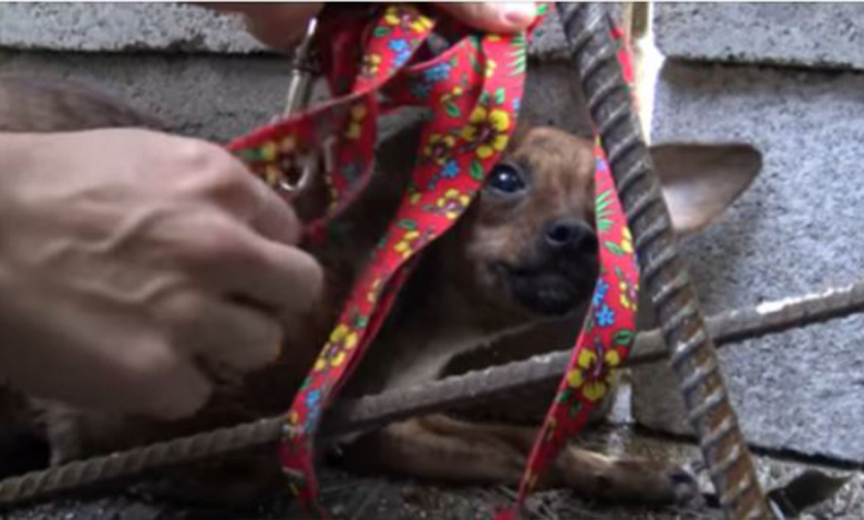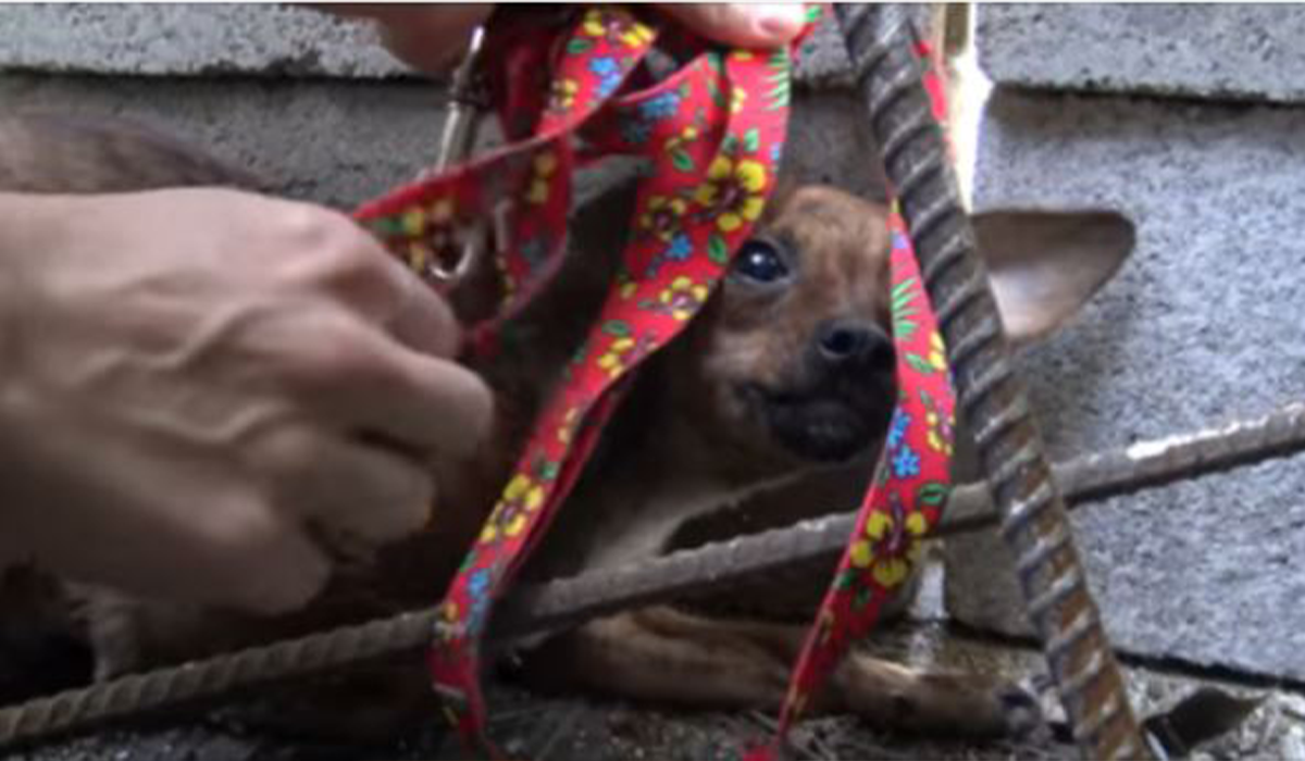 When rescuers Loreta and Eldad arrived, they had to act very carefully because the little dog was terrified of humans. After putting the Lucky Chain on her, they decided to call her Brave.