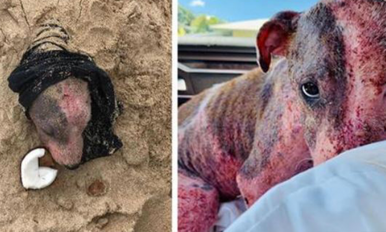 Badly Injured Dog Rescued After Being Buried Alive In The Sand