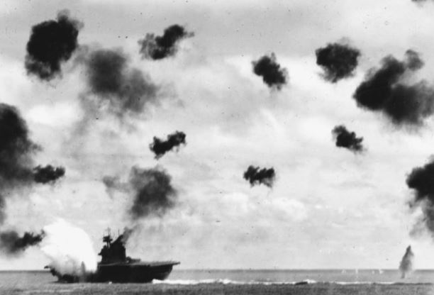 The Battle of Midway was a major naval battle in the Pacific Theater of World War II that took place on 4–7 June 1942, six months after Japan’s attack on Pearl Harbor and one month after the Battle of the Coral Sea.[6][7][8] The U.S. Navy under Admirals Chester W. Nimitz, Frank J. Fletcher, and Raymond A. Spruance defeated an attacking fleet of the Imperial Japanese Navy under Admirals Isoroku Yamamoto, Chūichi Nagumo, and Nobutake Kondō near Midway Atoll, inflicting devastating damage on the Japanese fleet. Military historian John Keegan called it “the most stunning and decisive blow in the history of naval warfare”,[9] while naval historian Craig Symonds called it “one of the most consequential naval engagements in world history, ranking alongside Salamis, Trafalgar, and Tsushima Strait, as both tactically decisive and strategically influential”.[10]