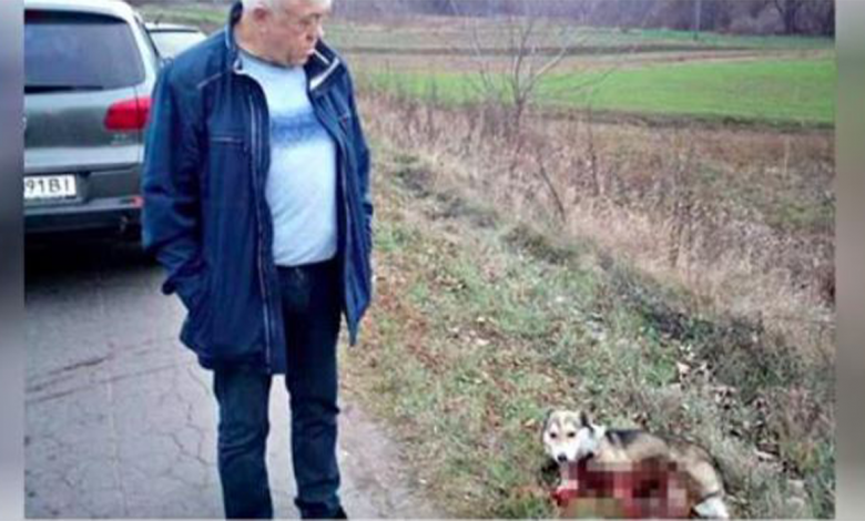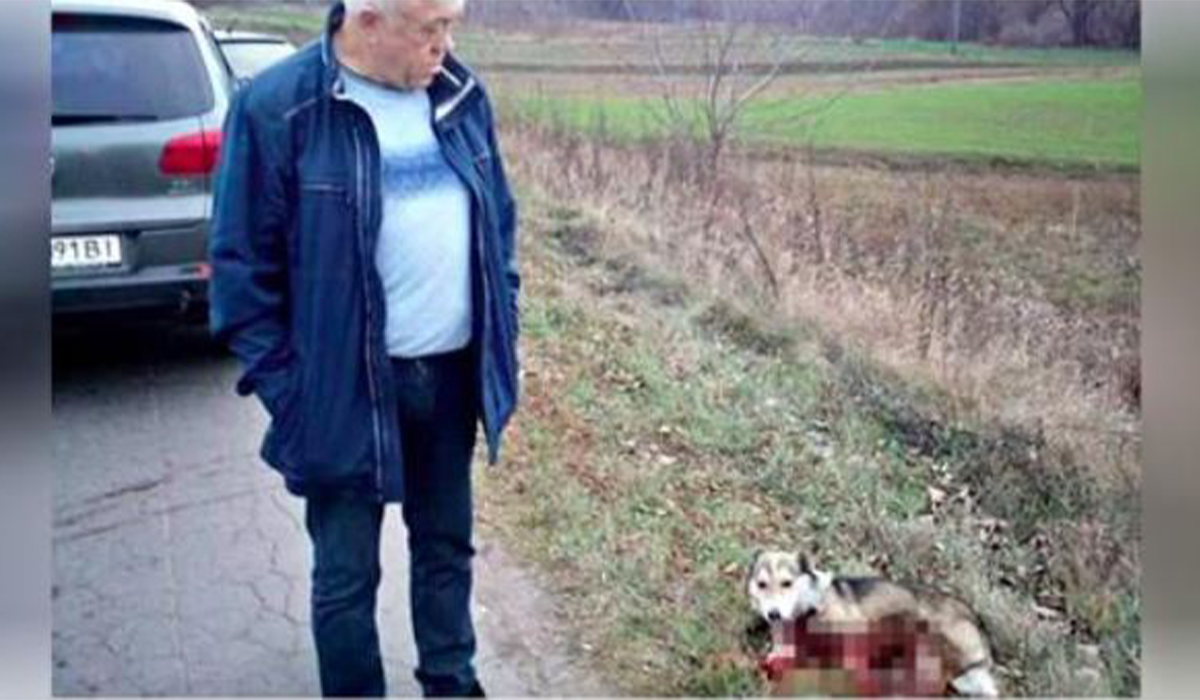 Ukraine official, Volodymyr Baidych, remained emotionless and unapologetic as he stood next to the severely injured dog. He said he was punishing his dog “for biting his mother. He said he was going to drag it to the woods and left it there to die.”