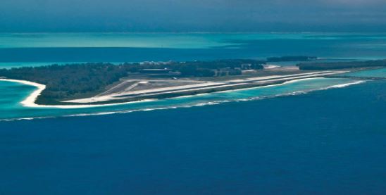 Midway Atoll (colloquial: Midway Islands; Hawaiian: Kauihelani, lit. ’the backbone of heaven’; Pihemanu, ‘the loud din of birds’)[2][3] is a 2.4-square-mile (6.2 km2) atoll in the North Pacific Ocean. Midway Atoll is an insular area of the United States and is an unorganized and unincorporated territory. The largest island is Sand Island, which has housing and an airstrip. Immediately to the east of Sand Island across the narrow Brooks Channel is Eastern Island, which is uninhabited and has no facilities. Forming a rough, incomplete circle around the two main islands and creating Midway Lagoon is Spit Island, a narrow reef.[1]