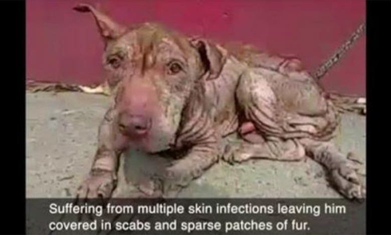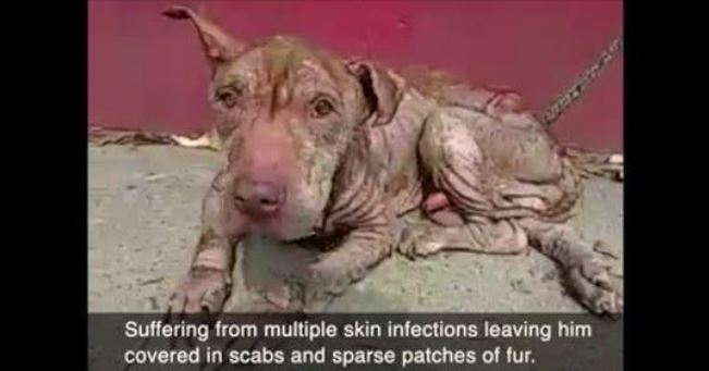 Norman the Pit bull did not have an easy start to life. He was neglected for all ten years of his life and had been severely abused. He had skin infections, was covered in scabs, and missing most of his hair. He was extremely emaciated and so weak that he could barely stand up. But despite all that he had gone through, he has never once lost his will to live, and never stopped wagging his tail.