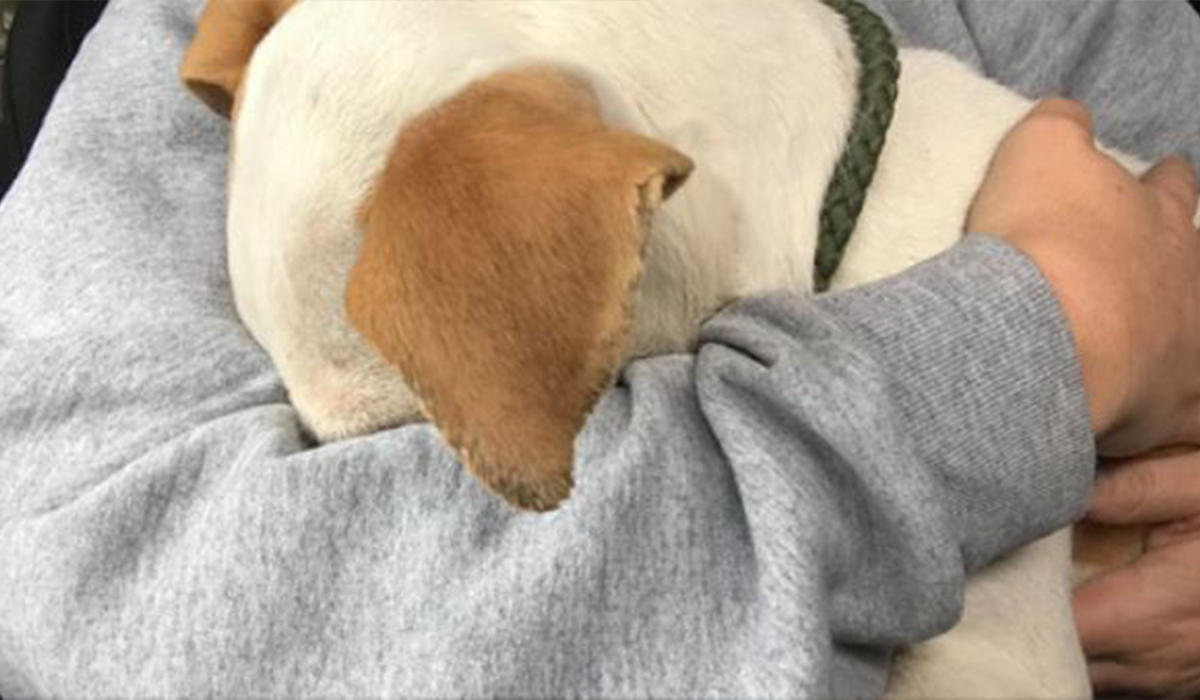 It wasn’t long after Chowder was rescued that she was already showing some love and comfort on the ride home. They wrote: “He just buried his face in our arms on his freedom ride. The thought of anyone treating him bad makes us so weepy. This angel needs us. We’re so grateful to the callers for taking action.”