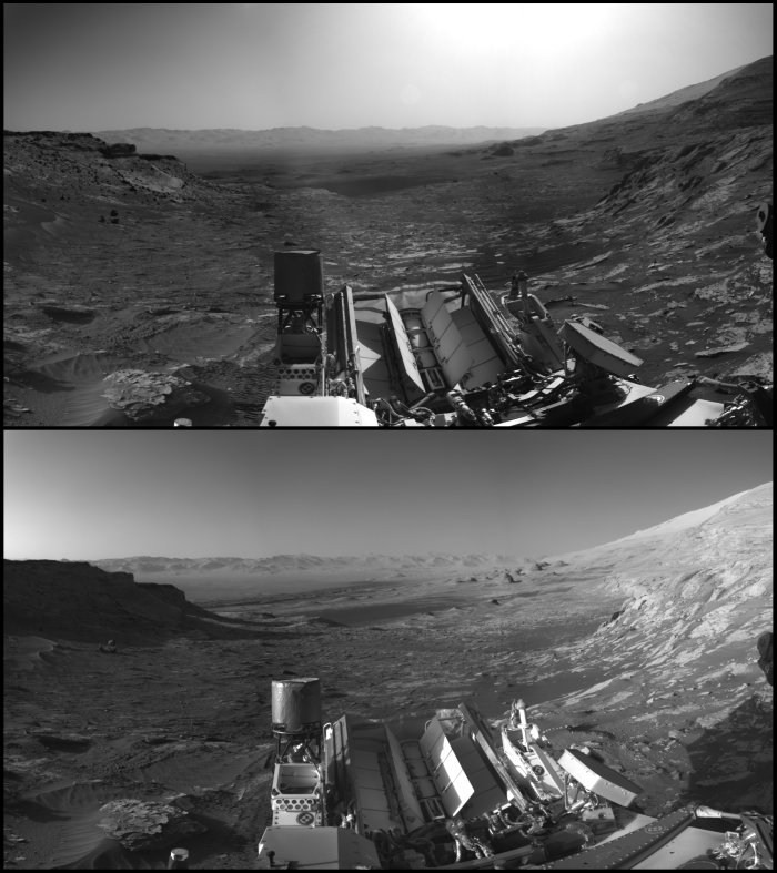 At 8.30 pm and also 4.10 pm Mars-time, Inquisitiveness caught 2 separate pictures of the scene as it looked back down the slopes of Mount Sharp. The two mosaics were sent back to Planet, where the Curiosity group combined them, including color to highlight just how the various light problems at the different times of day highlight landscape functions.